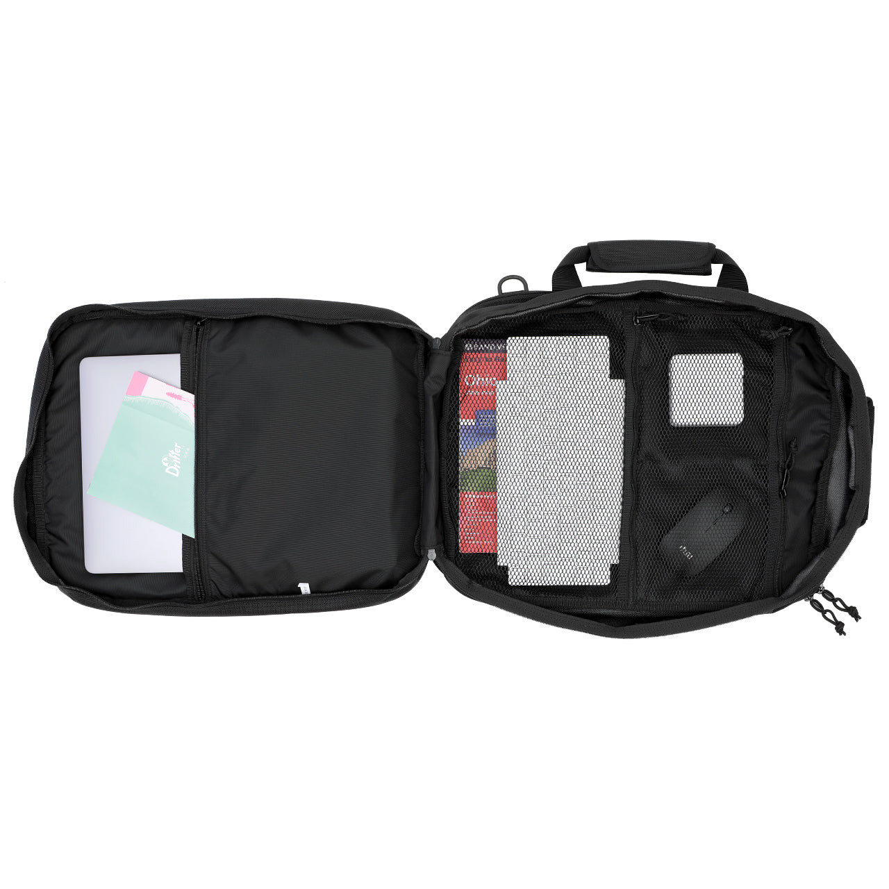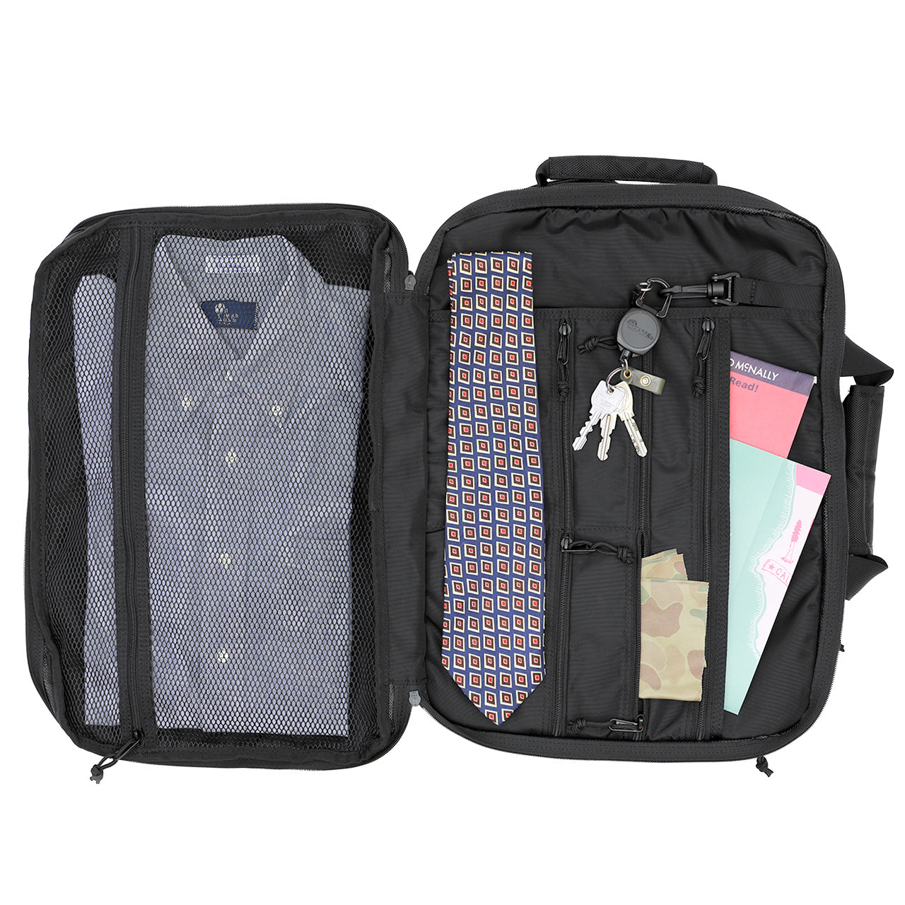 With a ballistic nylon finish, this functional 3-way bag can be used as a backpack, briefcase, or shoulder bag, which is said to be the strongest nylon material. Perfect for any business occasion, both the front pocket and the main compartment can be opened and closed at 180° making it especially convenient. Along with a padded sleeve specifically made for PC, there are various sized zipper pockets that are convenient for storing small items, and a chest strap is also included. In addition, the separately sold PHONE POUCH (phone pouch) and ATTACHED POUCH (attached pouch) can be attached to the shoulder harness and with the included trolley belt, the briefcase can be attached to the handle of the standard suitcase, so you can carry it with ease.