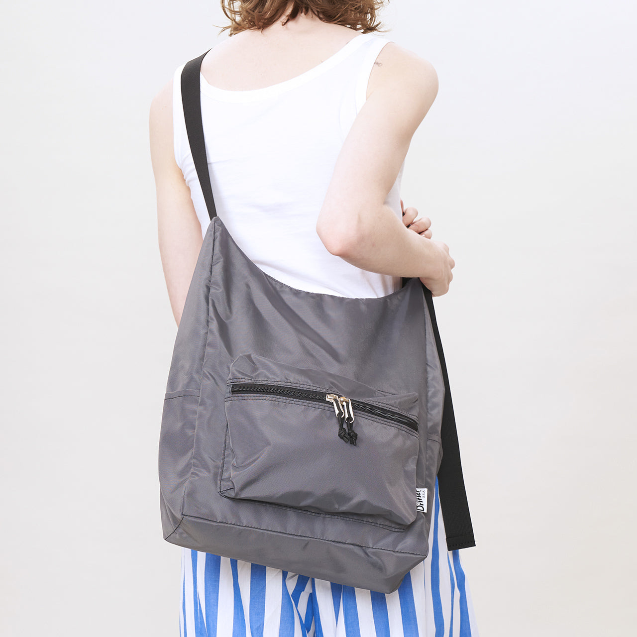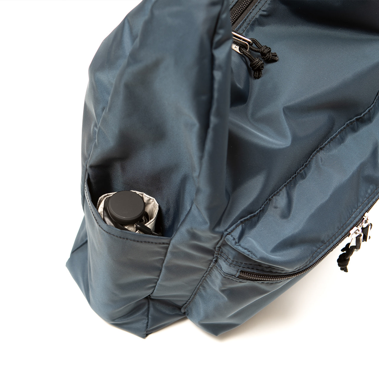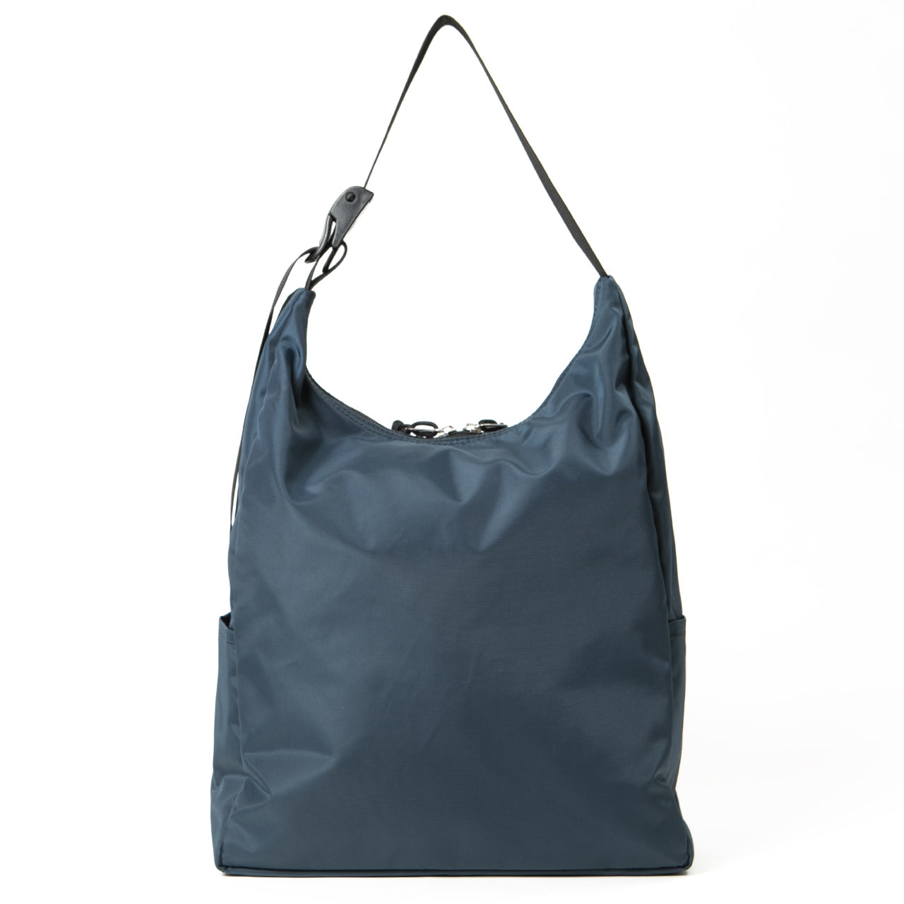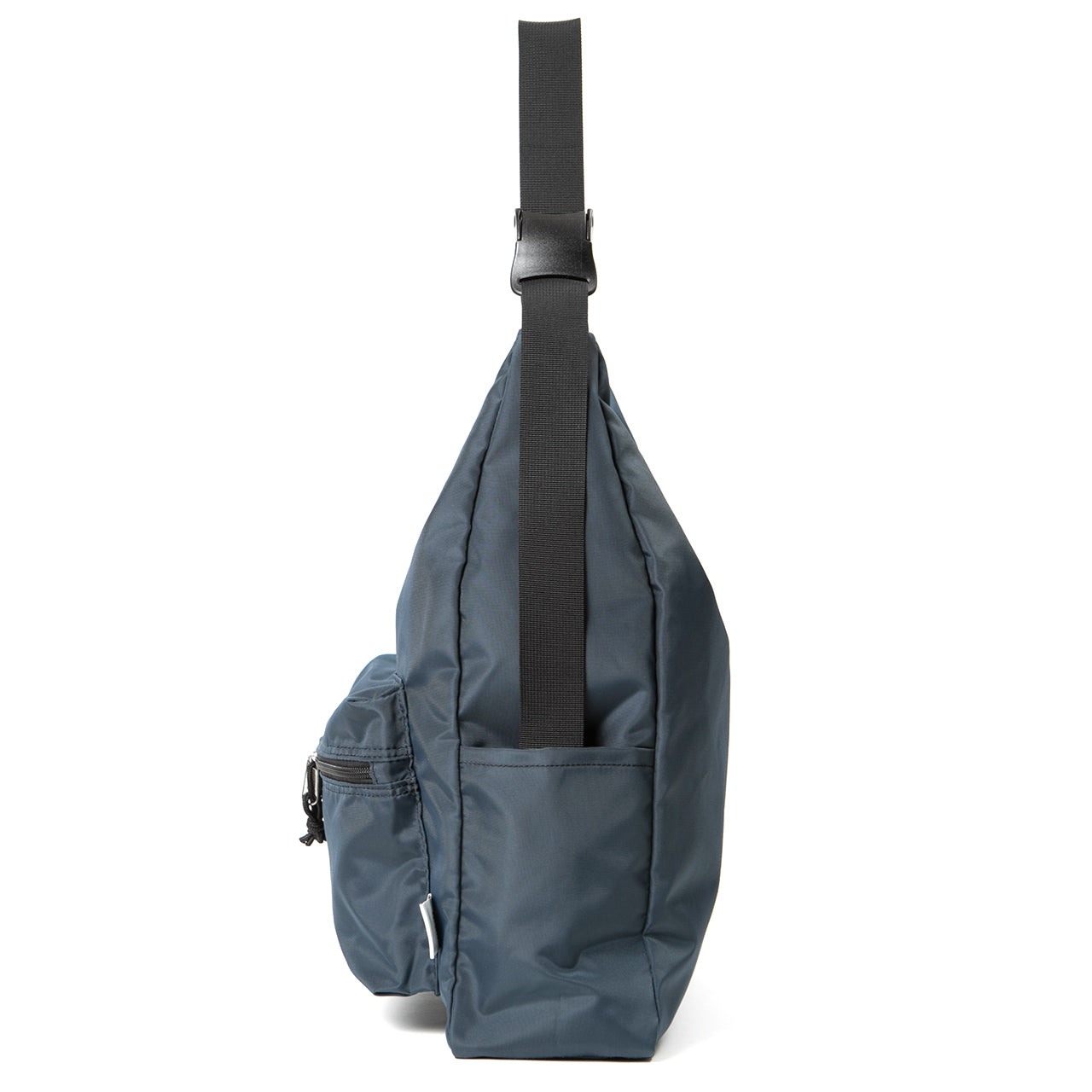 This shoulder bag is the perfect size for everyday use, with an impressive gusseted zip pocket on the front. The main compartment opens and closes with a secure zipper, and inside is a sleeve pocket for a PC and a zip pocket. The shoulder strap is adjustable with a cam buckle system for one-touch adjustment even when worn diagonally, and there are open pockets on both sides of the exterior for bottles, folded umbrellas, etc. The bag's design, capacity, and specifications are well balanced, making it suitable for use by all ages and genders.