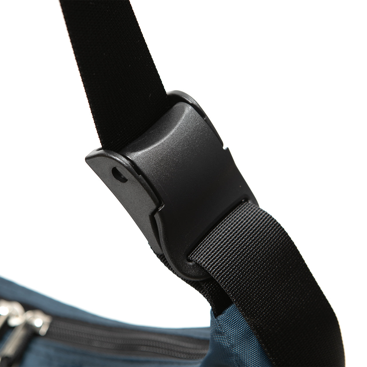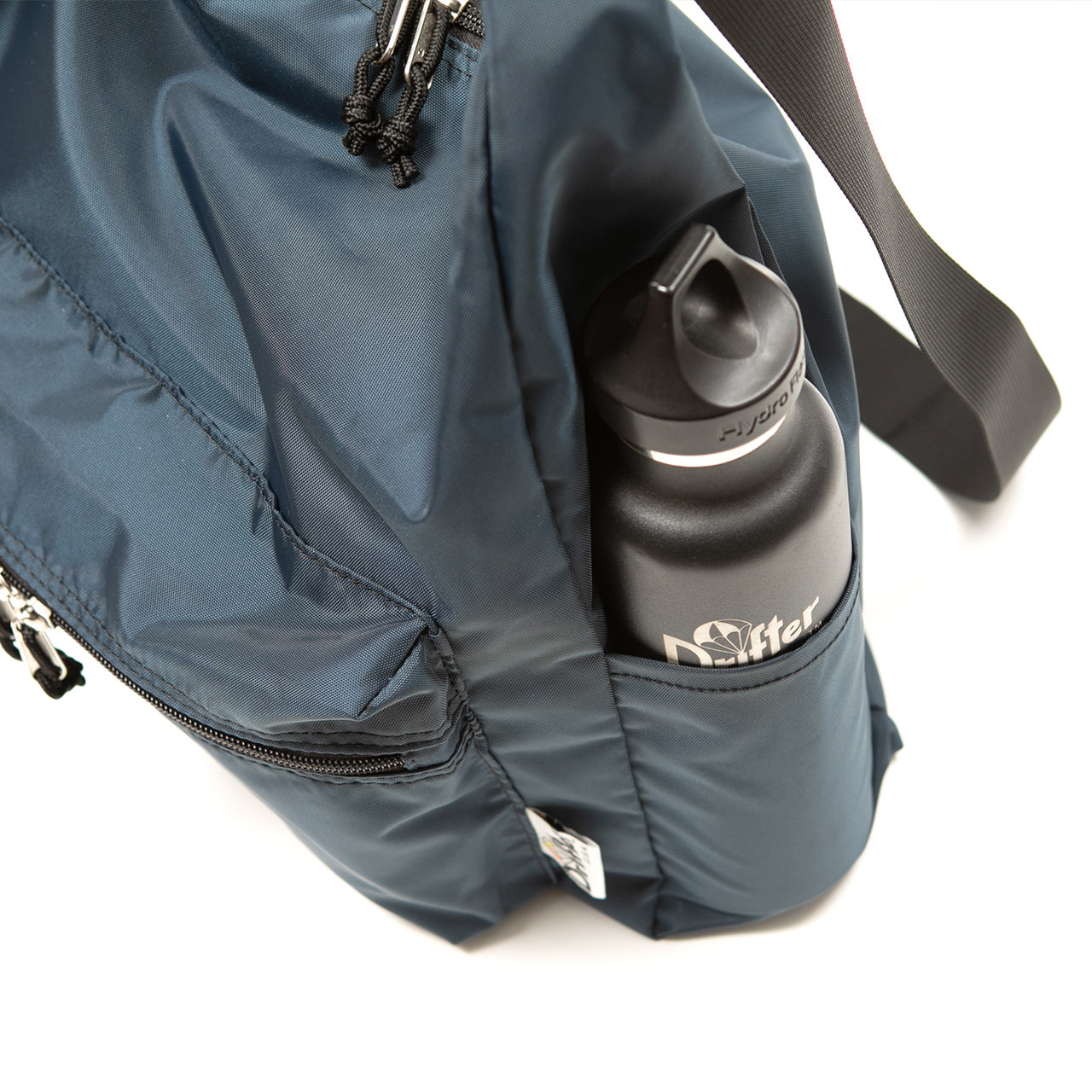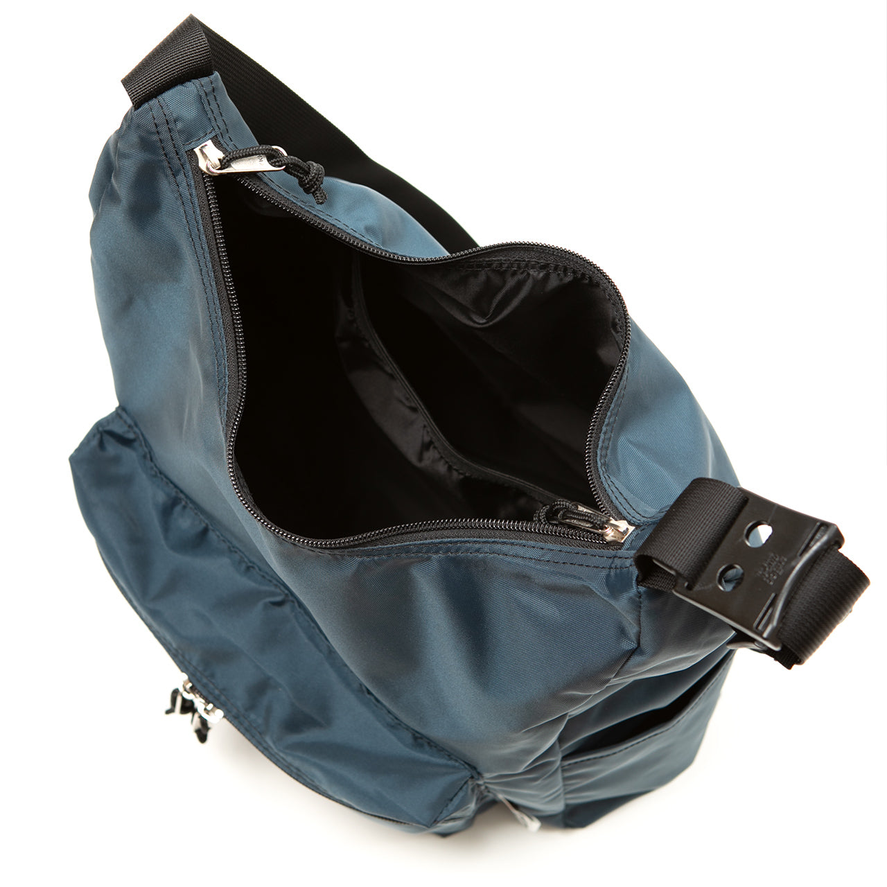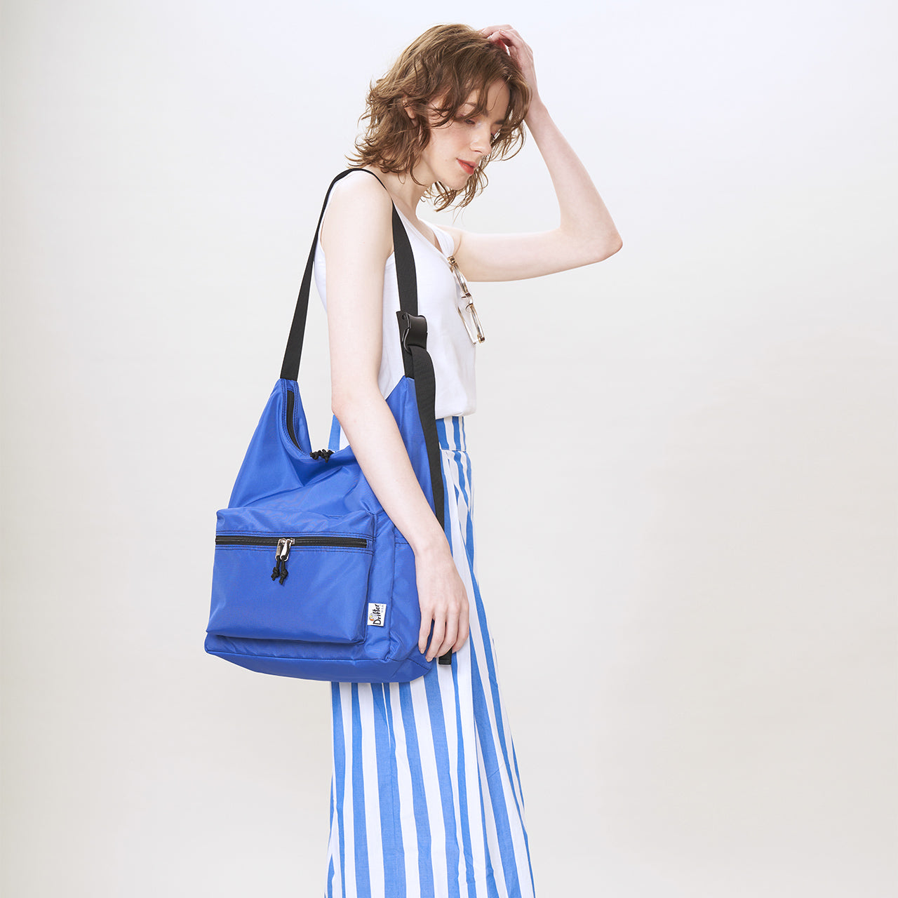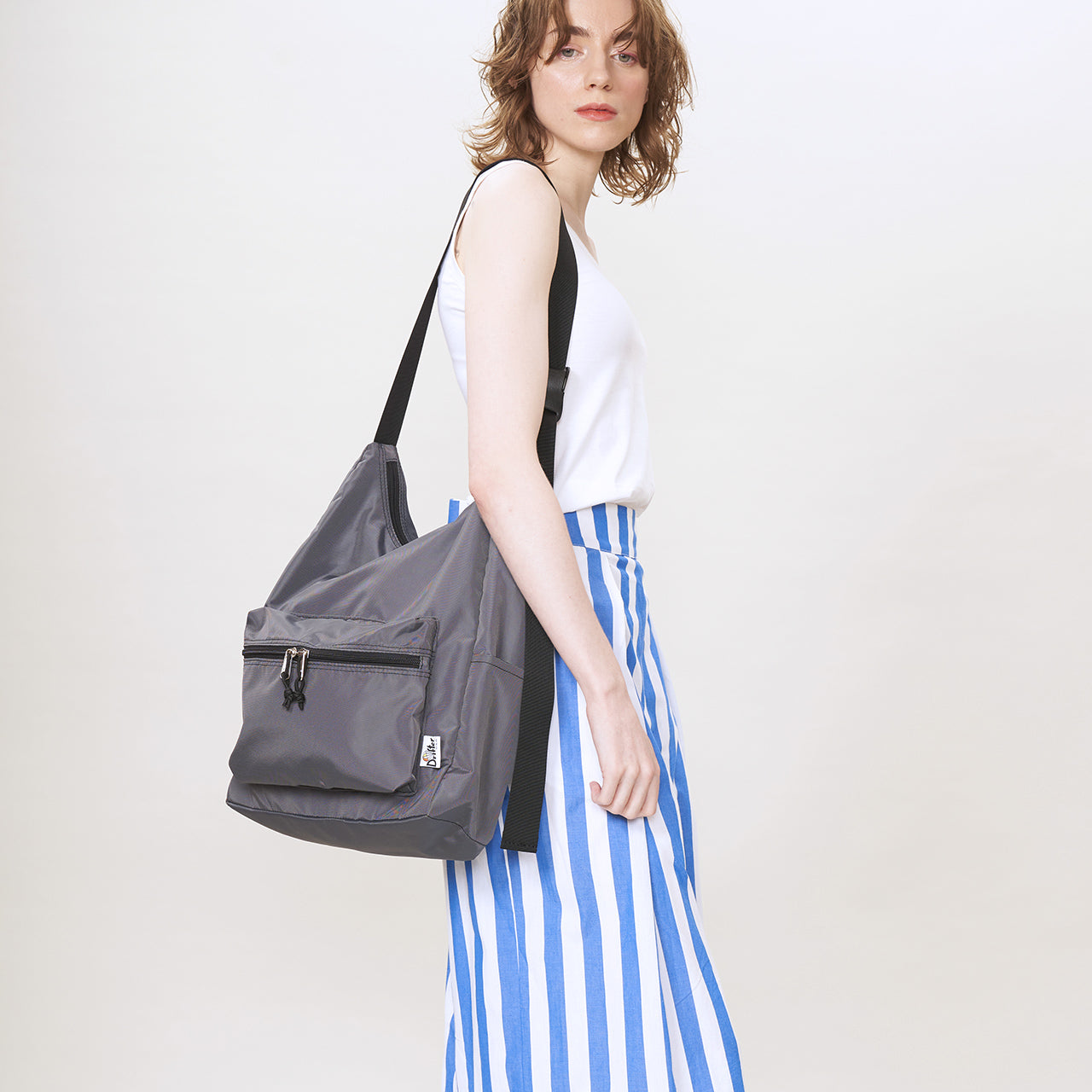 This shoulder bag is the perfect size for everyday use, with an impressive gusseted zip pocket on the front. The main compartment opens and closes with a secure zipper, and inside is a sleeve pocket for a PC and a zip pocket. The shoulder strap is adjustable with a cam buckle system for one-touch adjustment even when worn diagonally, and there are open pockets on both sides of the exterior for bottles, folded umbrellas, etc. The bag's design, capacity, and specifications are well balanced, making it suitable for use by all ages and genders.