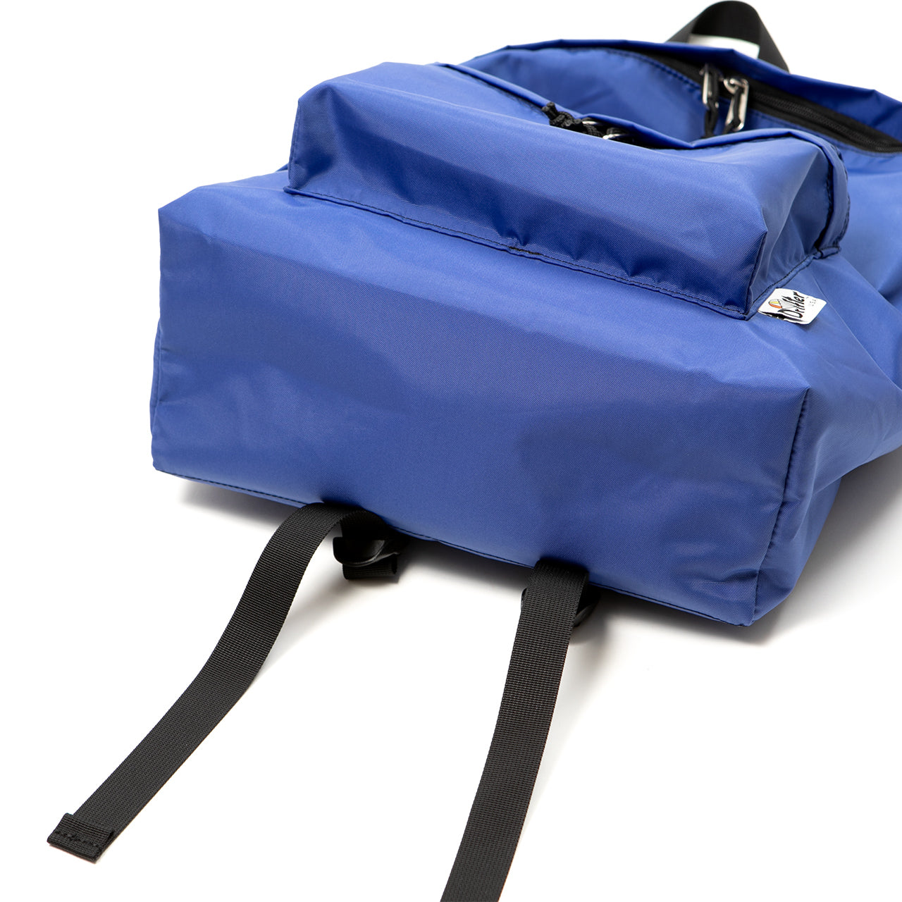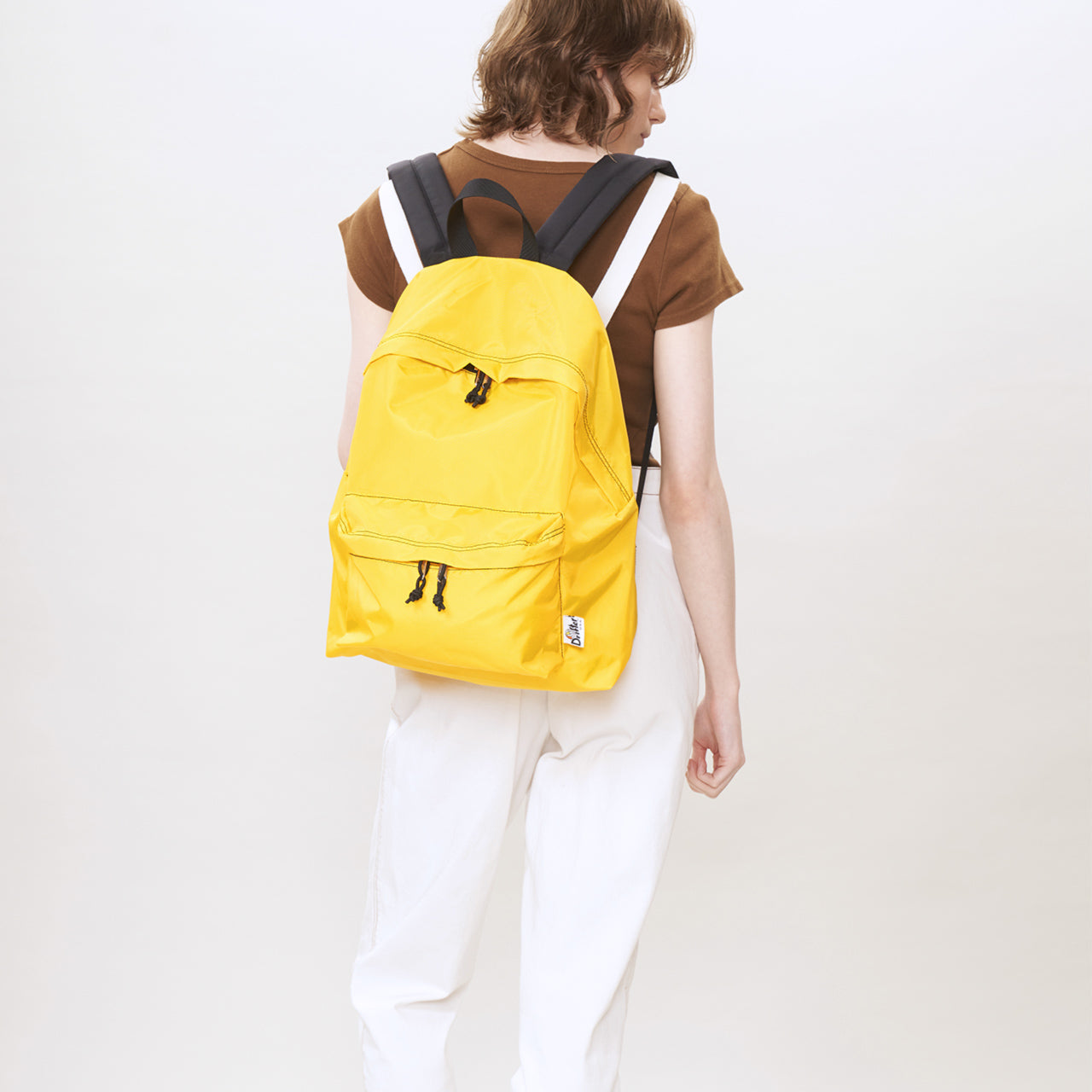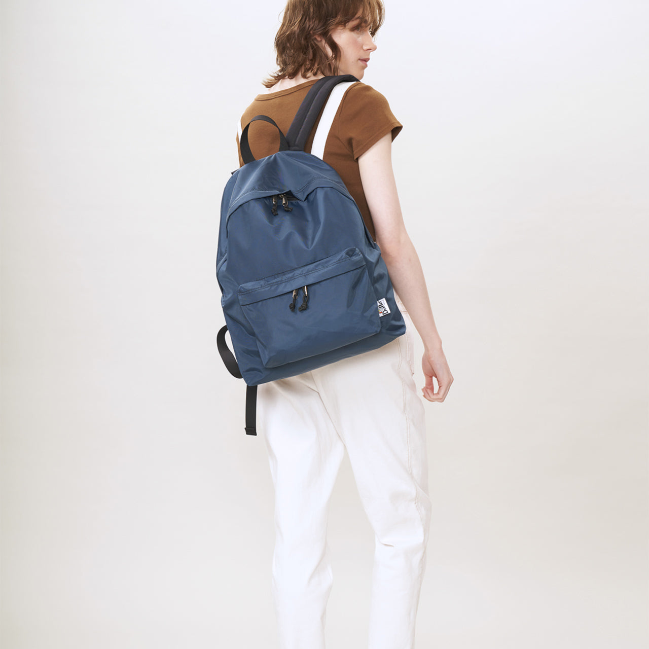 This backpack has a simple, American classic look that is ideal for everyday use and can hold an A4-size bag. It is equipped with a PC sleeve on the inside back and is padded to prevent the luggage from interfering with your back when you carry it. The front zipper pocket has a gusset, making it convenient for storing a long wallet or other small items that are frequently taken in and out of the bag. The simple, stripped-down design makes it easy to use with any coordinates.