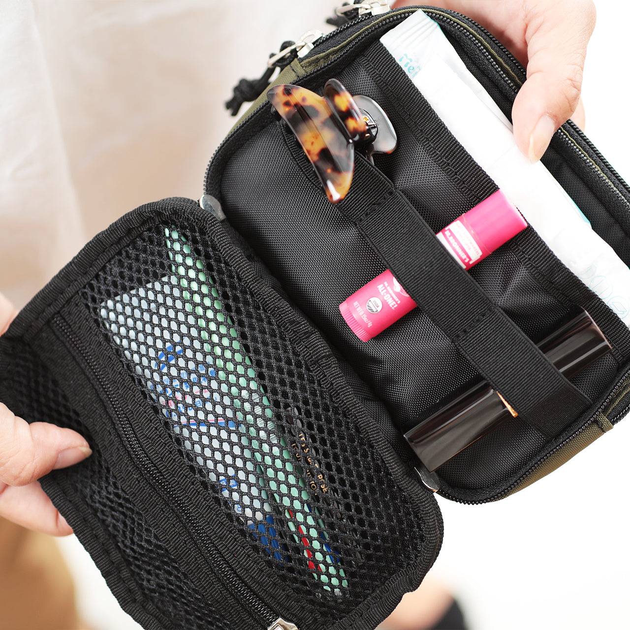 A functional pouch with various storage compartments such as mesh pockets, open pockets, and rubber bands. It has the optimum specifications when detailed classification is necessary for peripheral devices such as laptop computers, mobile phone chargers, mobile batteries, digital cameras, recording media, etc. Also, if you are a makeup artist, you can use it as a cosmetic pouch, and it is designed to be flexible depending on the user. With a wide variety of colors and sizes and a reasonable price, the only decision that you’d have to worry about is which one would match your outfit!