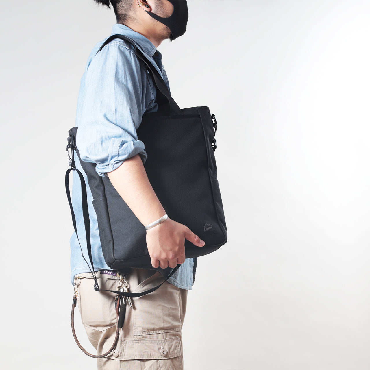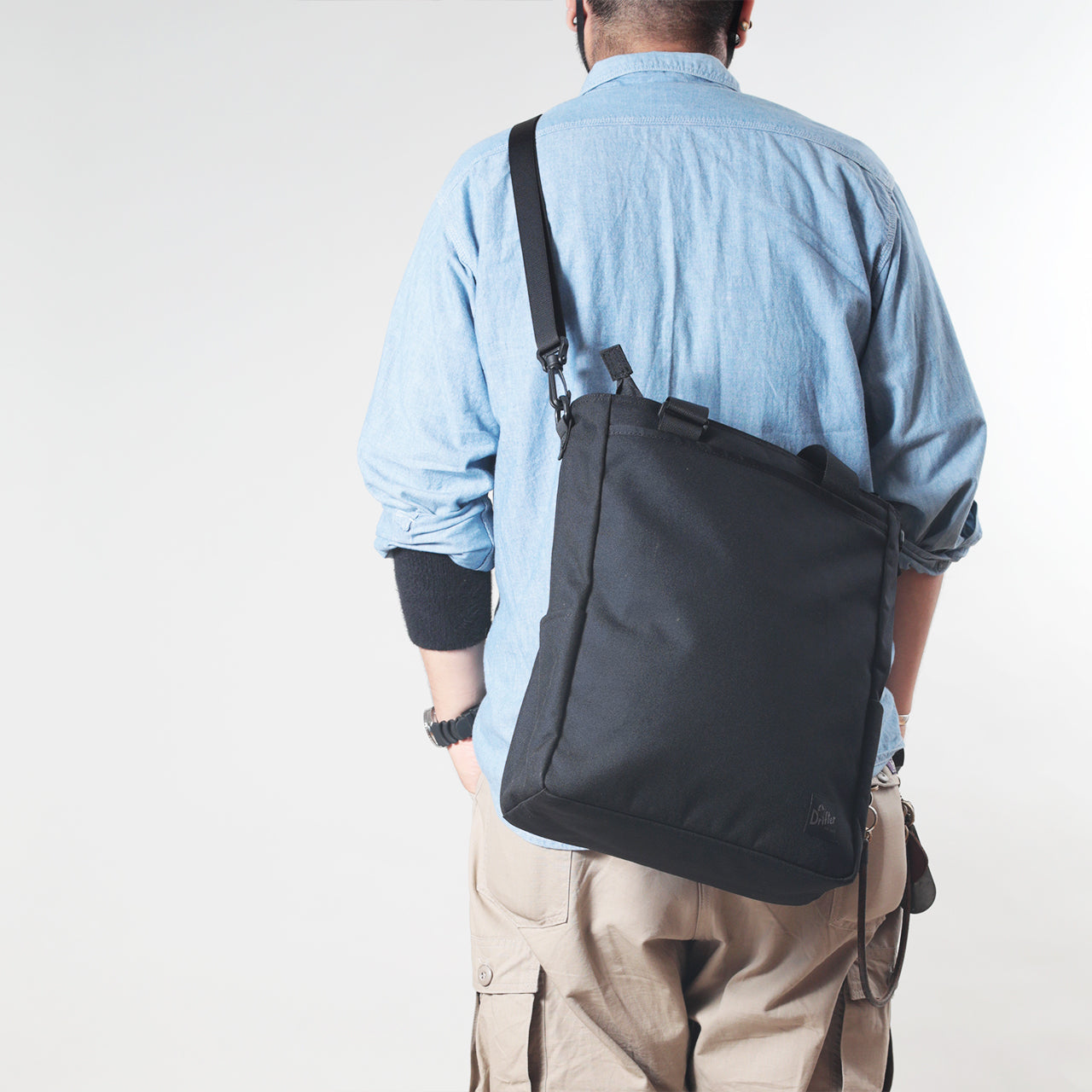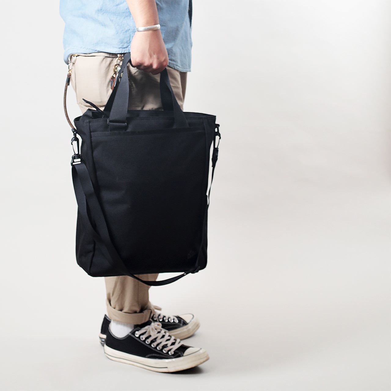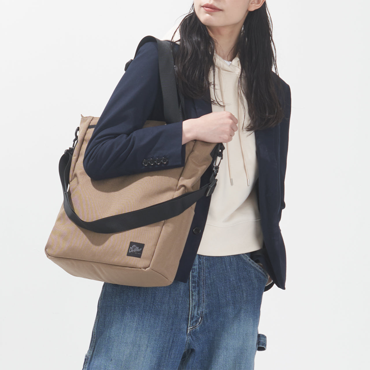 A functional tote bag equipped with various types of pockets made from 1000 Denier Cordura Nylon, which has a reputation for durability. The handle part has an adjustable design that can be worn on the shoulder or by hand, and a removable and adjustable shoulder strap that can be worn diagonally is also included. The interior has a built-in buffer pad suitable for carrying a laptop, and large and small pockets are ideal for storing other electronic devices. In addition, the Drifter label has a solid image (black) that is intended for business use and can be used in a wide range of situations, from everyday use to business trips and commuting.