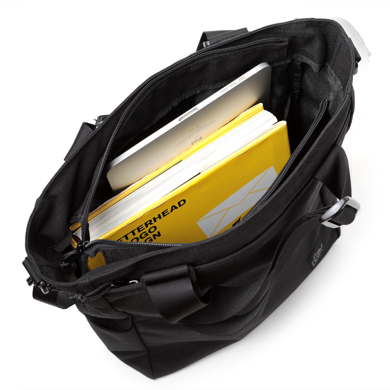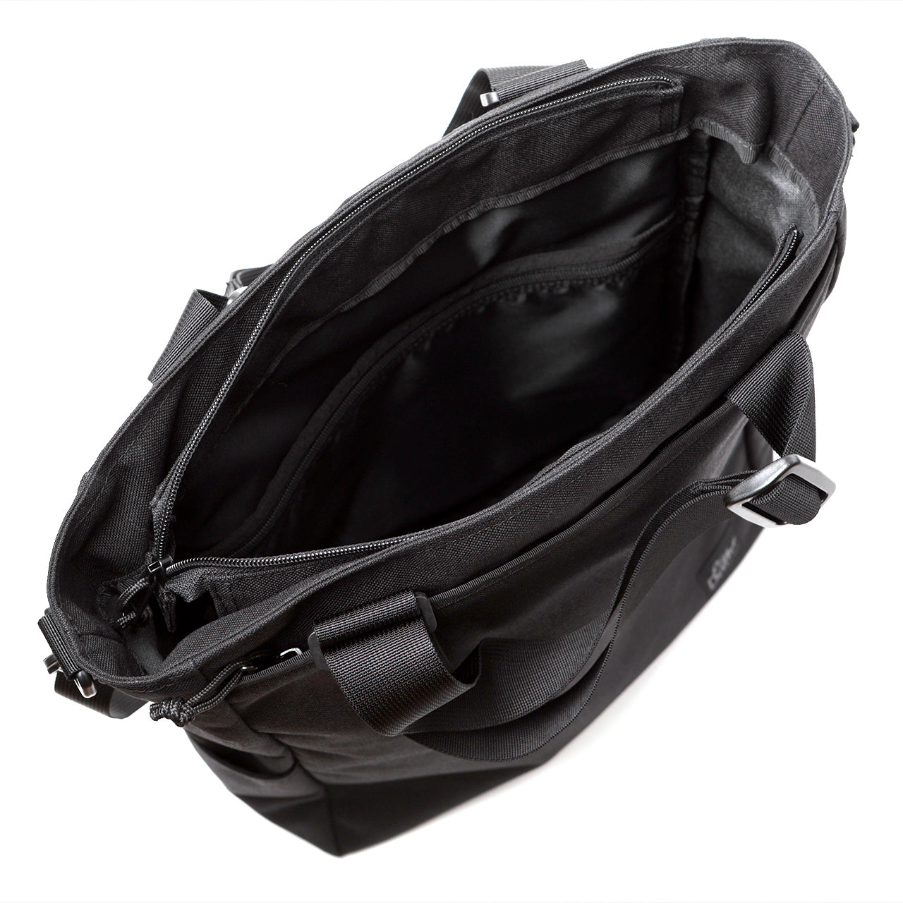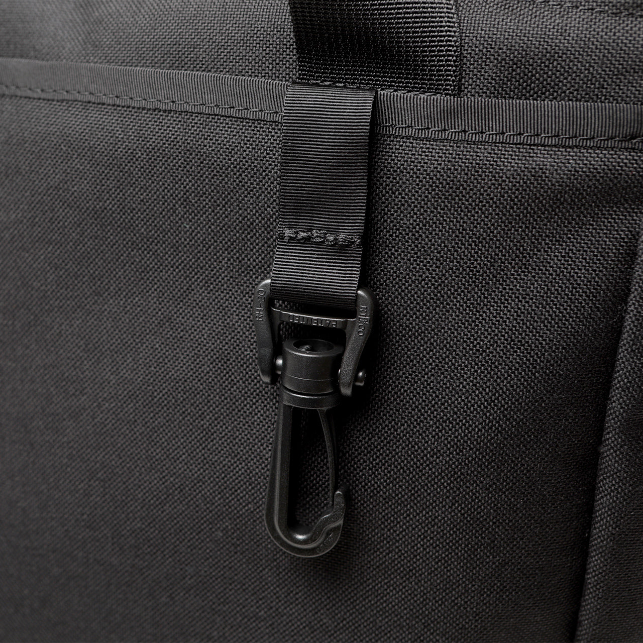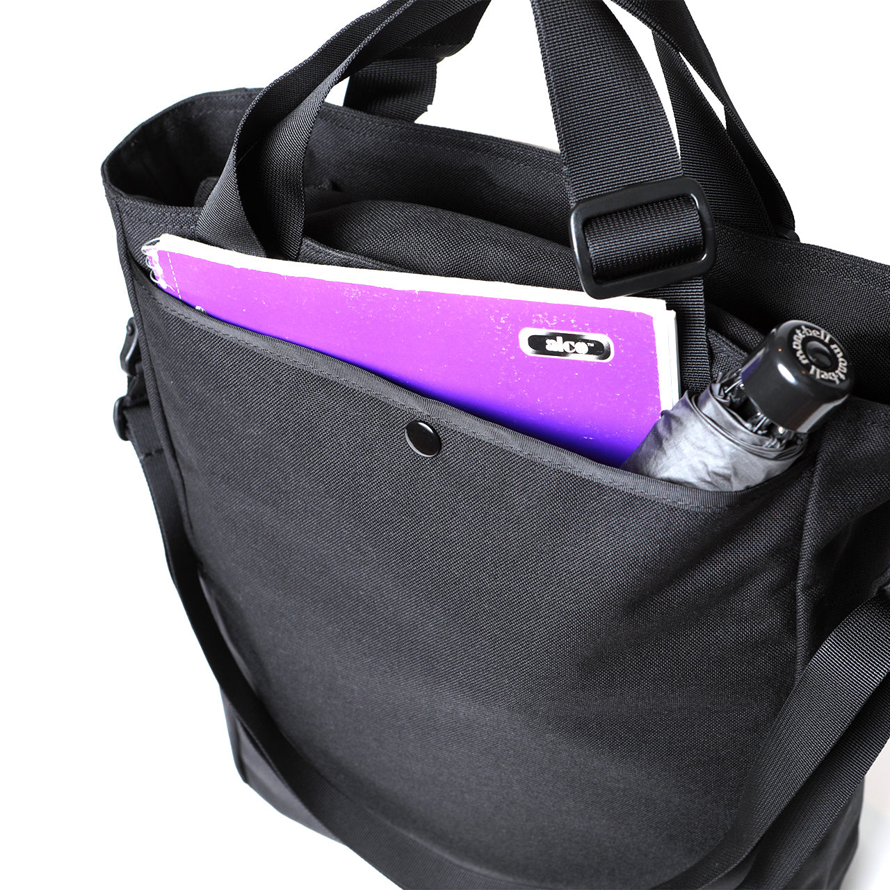 A functional tote bag equipped with various types of pockets made from 1000 Denier Cordura Nylon, which has a reputation for durability. The handle part has an adjustable design that can be worn on the shoulder or by hand, and a removable and adjustable shoulder strap that can be worn diagonally is also included. The interior has a built-in buffer pad suitable for carrying a laptop, and large and small pockets are ideal for storing other electronic devices. In addition, the Drifter label has a solid image (black) that is intended for business use and can be used in a wide range of situations, from everyday use to business trips and commuting.